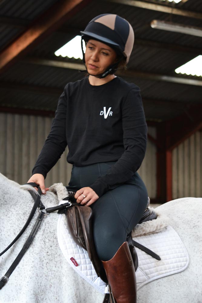 At DVR Equestrian we offer a range of high quality horse riding clothes including horse riding tops for all of your equestrian endeavours. Whether you are looking for tops for training, competition, or for yard duties, we have something for you. Your horse riding clothes deserve to be as comfortable and practical as any of your other sportswear and casual wear. Our horse riding clothes come in a range of colours and sizes, from XS to 2XL in some styles. If you like natural fabrics we highly recommend our Organic Cotton Eddie Long Sleeve t shirts. These are a lovely relaxed fit in a comfortable, very lightweight fabric, perfect for everyday stable duties and riding. These tops are perfect horse riding clothes as well as clothes for every day wear, whatever you're doing. Available in a range of colours including black, white, navy, dark grey and marl grey.